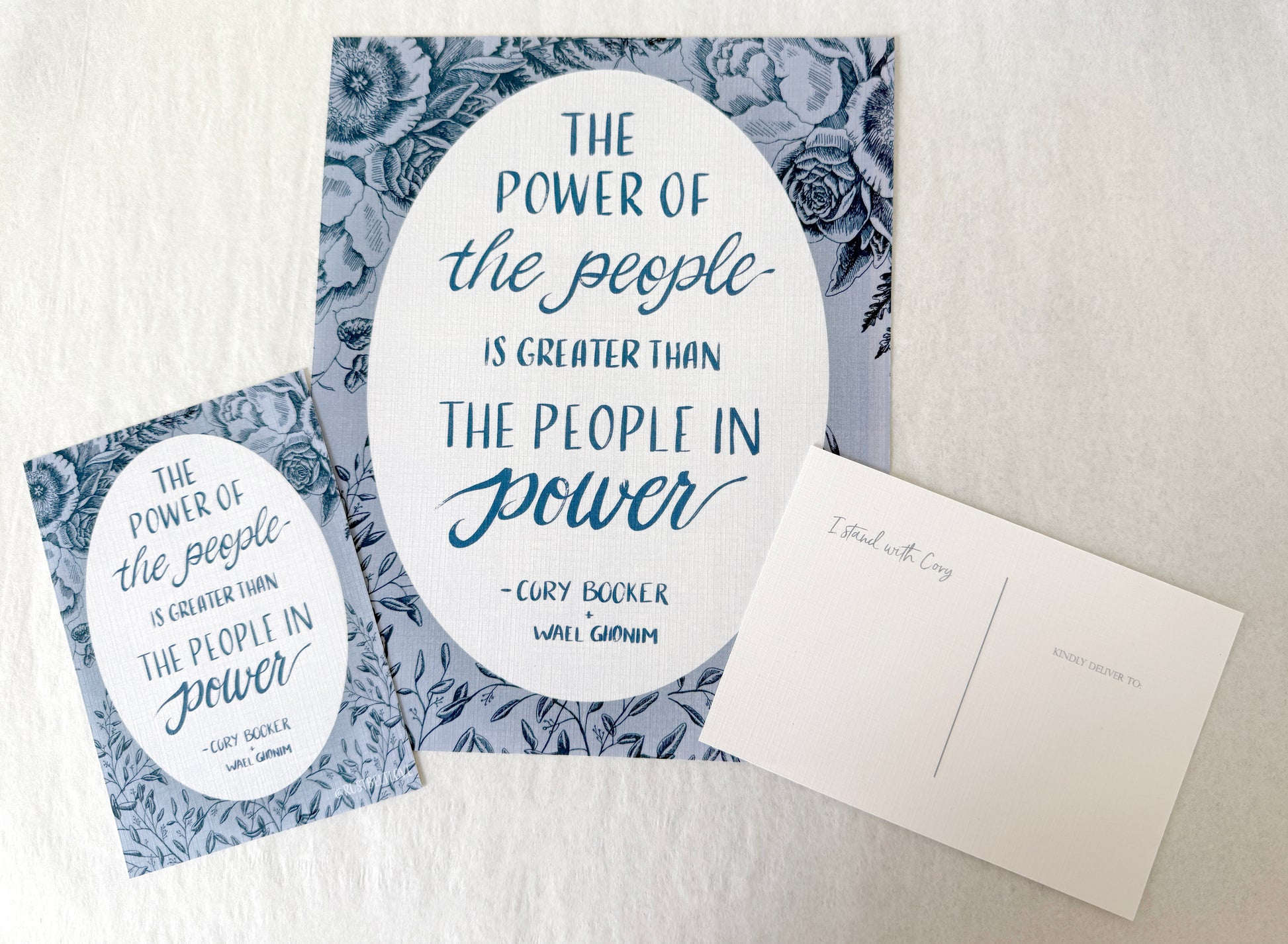 Includes an 8 x 10 floral print with the quote "The power of the people-is greater than the people in power" - Senator Cory Booker, as well as three postcards with stamps included! A portion of all sales will be donated to the ACLU.